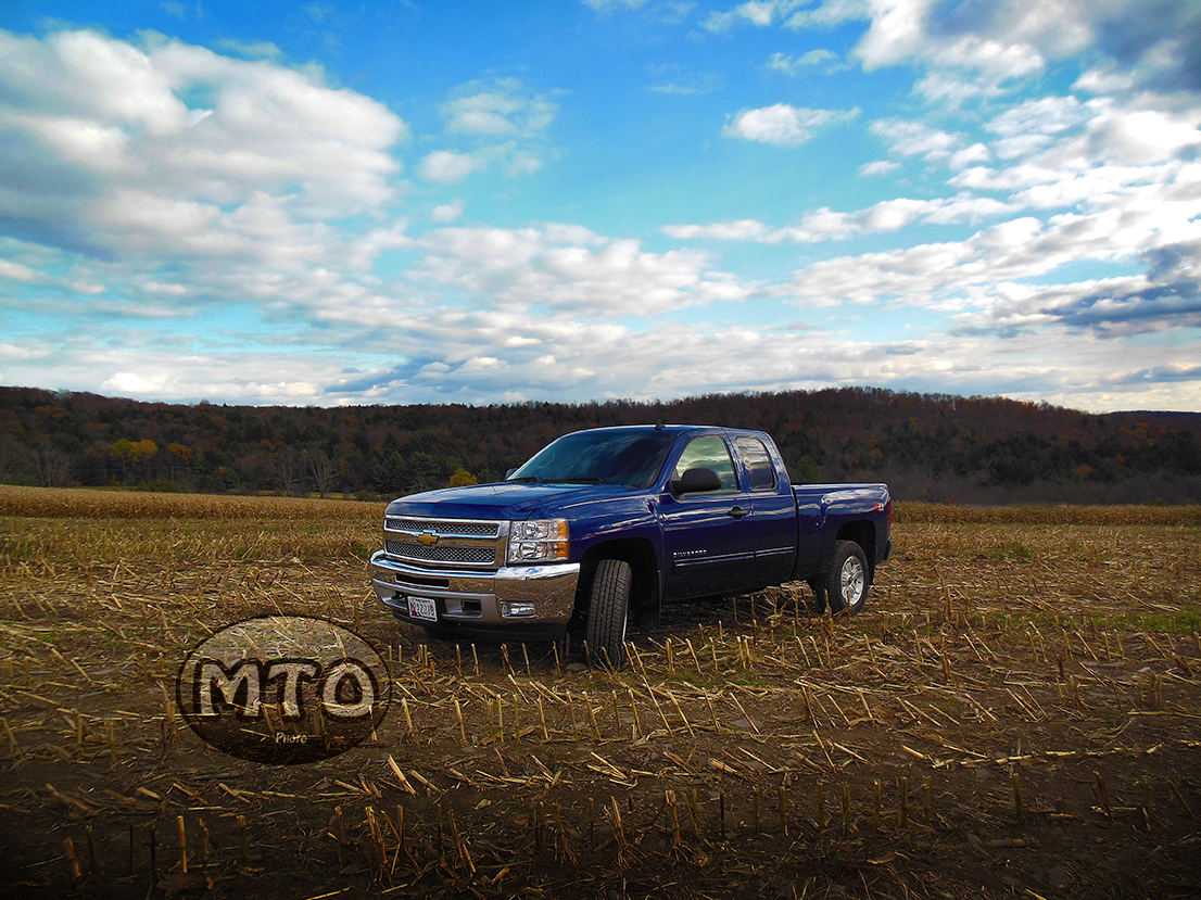 Blue Silverado Truck in a Farmers Field